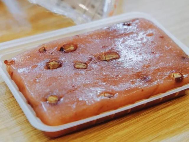 方糕特别适合拿来当午后小甜点,一整块有些夯实,中间夹杂着的馅料赤豆甜度适中,吃完后心情都会变好哦!
