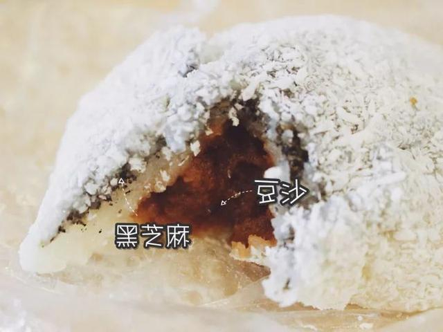 撒着椰丝的冷团,白雪皑皑的样子超可爱~小清新的椰丝带着糯糯“外衣”,内馅豆沙清甜细腻,芝麻很香醇,一大口下去,双重满足。