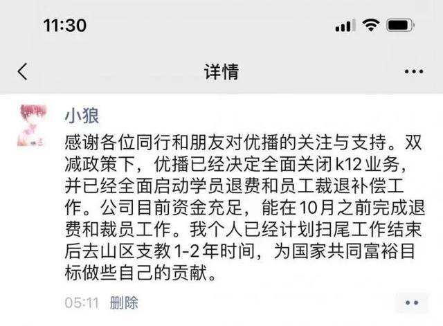9月13日,东方优播CEO朱宇在朋友圈中称,“双减”政策下,东方优播已经决定全面关闭K12业务。