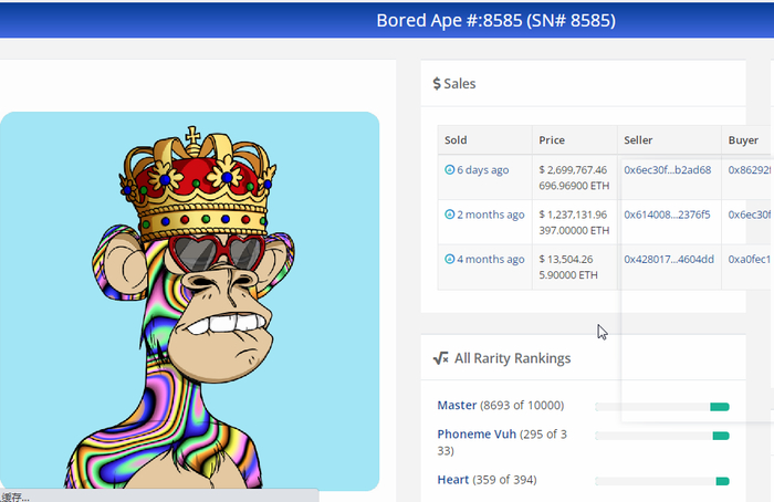 另一款红得发紫的NFT收藏品项目是BYAC,其全称是Bored Ape Yacht Club,是由一万个猿猴NFT组成的收藏品,包括了帽子、眼睛、神态、服装、背景等170个稀有度不同的属性。