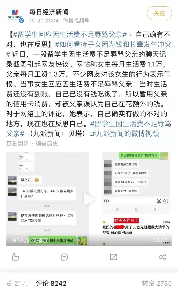 原标题:反思“留学生辱骂父亲”事件:如何修复失败的亲子关系 来源:澎湃新闻