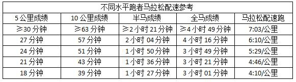 不同水平跑者马拉松配速参考