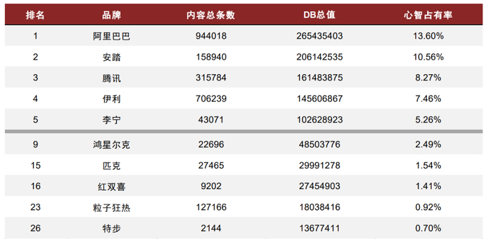 图表10:东京奥运品牌营销榜部分品牌排名