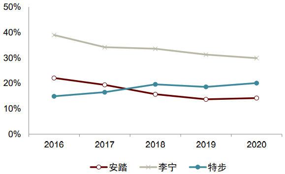 资料来源:安踏体育、李宁、特步国际公司年报,中金公司研究部