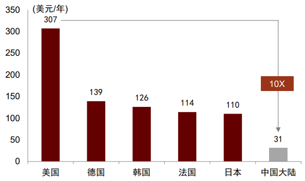 图表20:2020年主要经济体人均运动鞋服支出