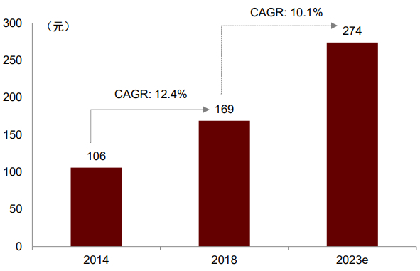 图表19:国内运动鞋服人均消费