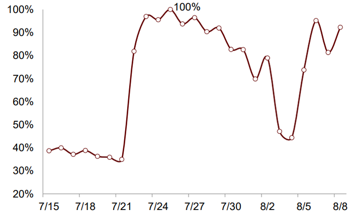 注:数据区间为7月12日至8月9日