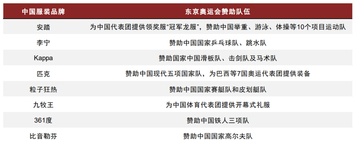 图表11:东京奥运会中国服装品牌赞助情况