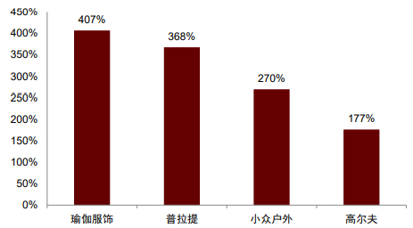 随着运动产业的不断发展,国民运动参与呈现出细分化、专业化和个性化的特征。京东数据显示,2020年双11期间,瑜伽、普拉提等小众运动装备的销售实现了成倍增长。伴随着年轻一代对个性化的更高需求,我们认为细分运动领域也有望迎来快速发展。