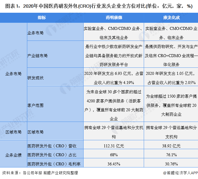 原标题:干货!2021年中国医药研发外包(CRO)行业龙头企业分析——康龙化成:被低估的CRO龙头 来源:前瞻产业研究院