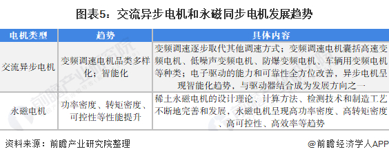 随着计算机技术、微电子学、微处理器、功率电子学的发展,预计交流异步电机呈现智能化趋势,与驱动器结合成为发展方向之一;同时,永磁电机性能提升,呈现高功率密度、高转矩密度、高可控性、高效率等趋势。