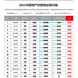 2021中国地产优质物业榜50强:碧桂园服务、万科物业、恒大物业位居前三