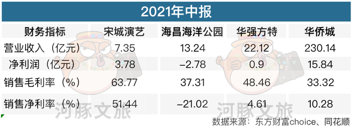 部分主题乐园企业2021年中报数据(小娱据公开数据整理)