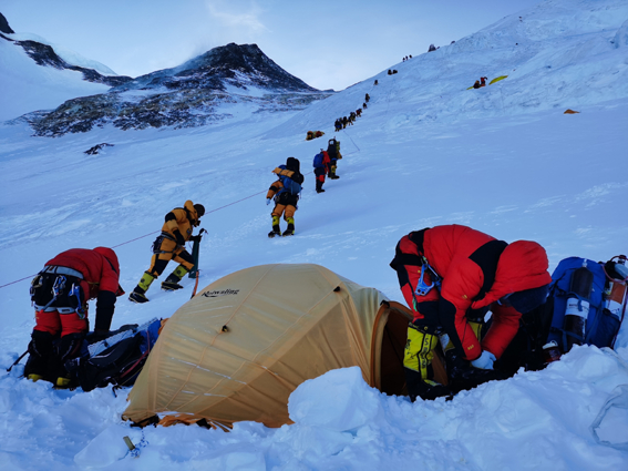 但对陈旻来说,一切磨砺和付出都是值得的,随着天气好转,终于迎来最后的冲顶期。5月22日晚上11点,穿好装备,背上12斤重的冲顶包,陈旻与自己的夏尔巴向导第一个出发。