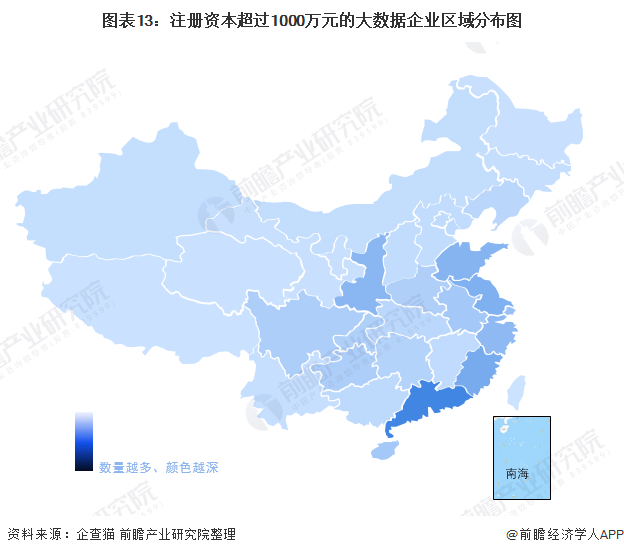 1、区域竞争:中国大数据企业主要分布在京津冀与东部沿海地区