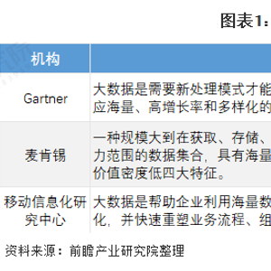 根据中国信通院发布的《大数据白皮书(2020年)》,大数据产业是以数据及数据所蕴含的信息价值为核心生产要素,通过数据技术、数据产品、数据服务等形式,使数据与信息价值在各行业经济活动中得到充分释放的赋能型产业。不同机构对大数据的定义也有所不同,具体如下: