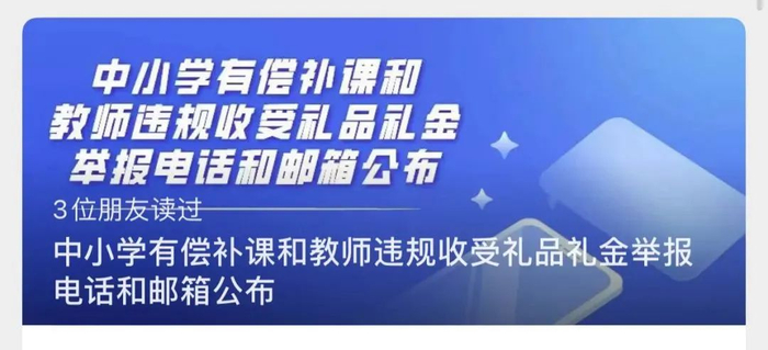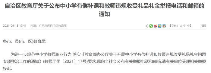 广东:各级教育行政部门设立中小学有偿补课和教师违规收受礼品礼金举报电话和邮箱,受理相关举报投诉(点击查询举报方式)