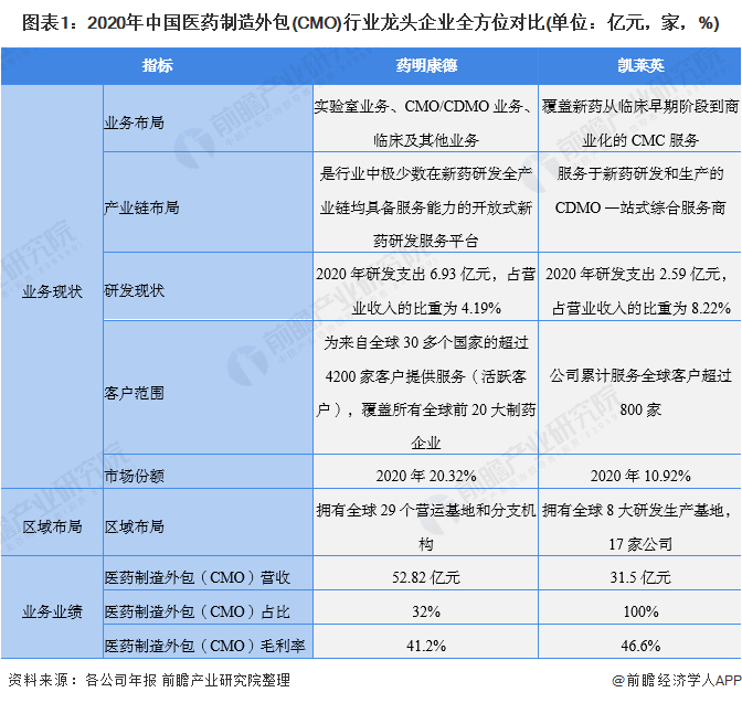 1、中国医药制造外包(CMO)行业龙头企业全方位对比