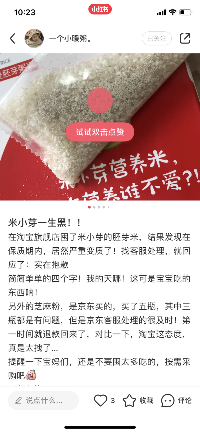 一生黑!婴幼儿辅食界黑马“米小芽”胚芽米保质期内严重变质 客服回应“实在抱歉”