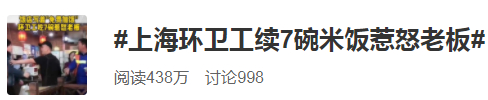 “上海环卫工续7碗米饭惹怒饭店老板”的视频