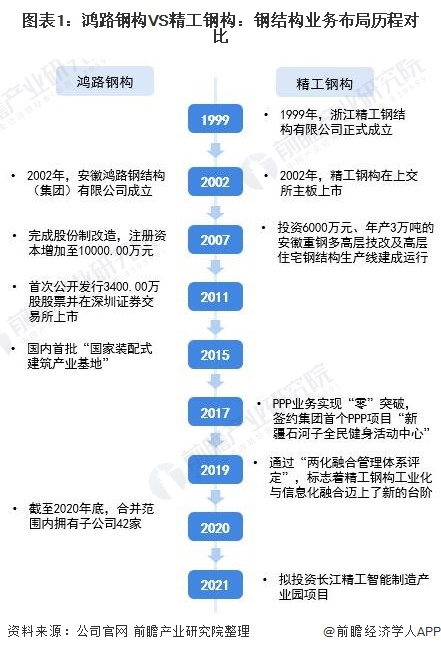 1、鸿路钢构VS精工钢构:钢结构业务布局历程
