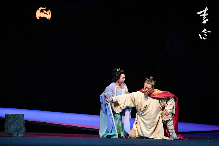 虽然是讲观众熟悉的李白,但这部戏的角度又与观众一贯所熟知的诗人有所不同。作者郭启宏恰恰放弃了李白飞扬恣意的一面,选择了他人生的晚年阶段,讲述他一腔报国情却深陷权谋后的无奈,以及对于“出世”与“入世”的两难抉择。这样的角度,既饱含了浪漫的诗情,又夹杂着丰富的人生哲理。在李白身上,体现出中国文人的风骨和中国文化的气质。