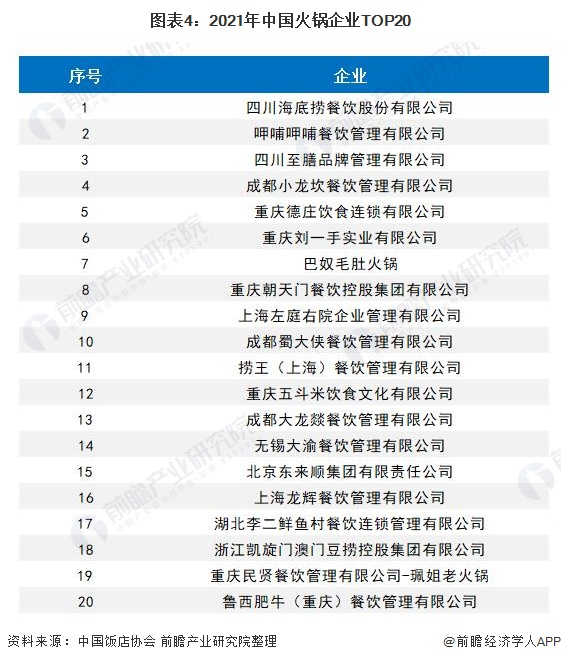 原标题:【行业深度】洞察2021:中国火锅行业竞争格局及市场份额(附市场集中度、企业竞争力评价等) 来源:前瞻产业研究院