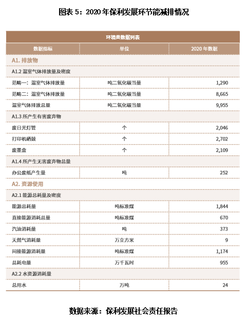 A股房企中,保利发展没有发布独立的ESG报告,但在2020年的社会责任报告中有披露绿色环保的相关举措和数据。