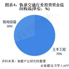 以地铁为例,城市轨道交通建设主要可以分为土木工程建设和以机车购置、信号系统建设为主的机电设备建设。其中土木工程费用在地铁建设费用中占比达到70%,主要用于车站建设和区间线路建设;车辆、信号、自动售检票系统等机电设备投资建设占比30%。以北京地铁4号线为例,其建设投资154亿元,其中107亿元用于土建工程的投资建设;47亿元用于机电设备投资建设。