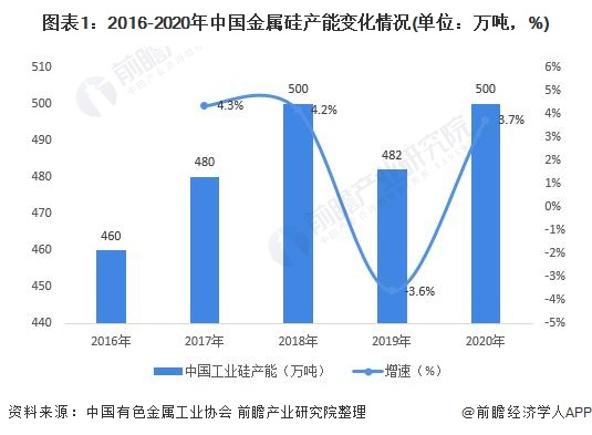 金属硅冶炼属于高耗能生产,中国的金属硅生产已由来已久,随着国家能源政策的收紧和节能减排的开展,以及对新能源的提倡,金属硅冶炼已经成为初级的产品和工艺,很多国内新兴的能源企业建设了金属硅,多晶硅,单晶硅,太阳能电池等一系列的循环产业链条。近年海外在产产能呈现逐步减少的态势,中国产能变化已成为全球整体产能变化的主导因素。根据有色金属工业协会硅行业分会统计数据,截止2020年,我国金属硅年产能合计500万吨,同比增长3.7%。