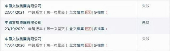 在此之前,中国文旅分别在2020年4月17日、2020年10月23日以及2021年4月23日向港交所递交招股书,但均未能在6个月内通过聆讯,以失败告终。