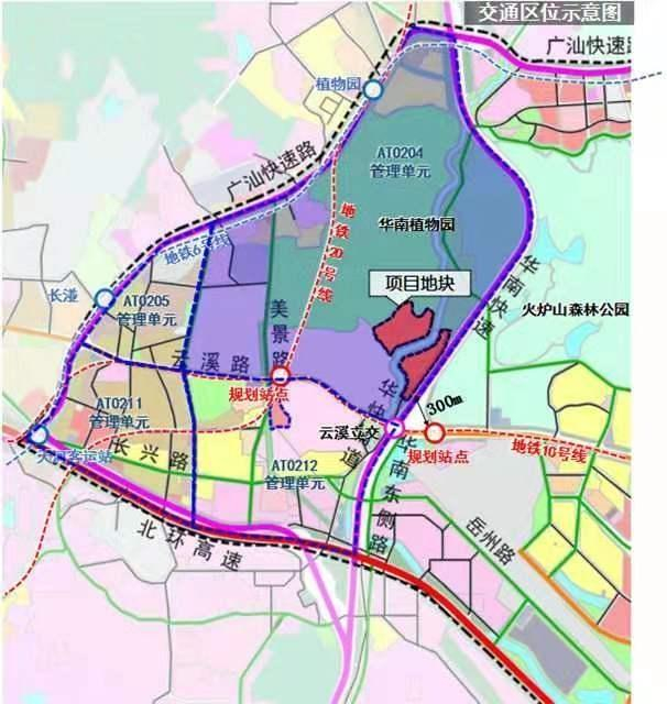 项目位于天河区长兴街道,北侧为华南植物园,西南侧为中科院化学研究所,东侧为华南快速路,中部有车陂涌穿过,环境优美。距规划地铁10号线站点仅300米,距规划云溪路立交(华南快速出入口)约200米,远期对外出行条件良好。规划范围11.84公顷,原为低效厂房及空地,现为天河区土发中心收储用地,现状已基本完成征拆。