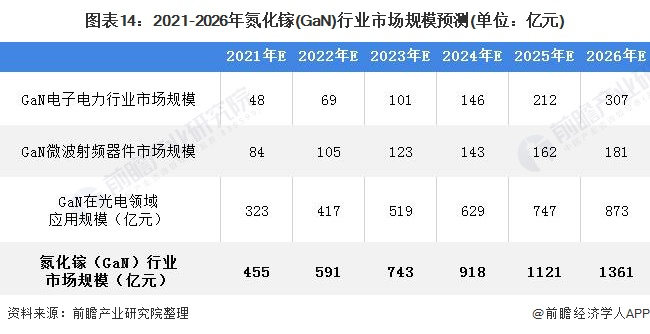 以上数据参考前瞻产业研究院《中国氮化镓(GaN)行业市场前瞻与投资战略规划分析报告》,同时前瞻产业研究院还提供产业大数据、产业研究、产业链咨询、产业图谱、产业规划、园区规划、产业招商引资、IPO募投可研、招股说明书撰写等解决方案。