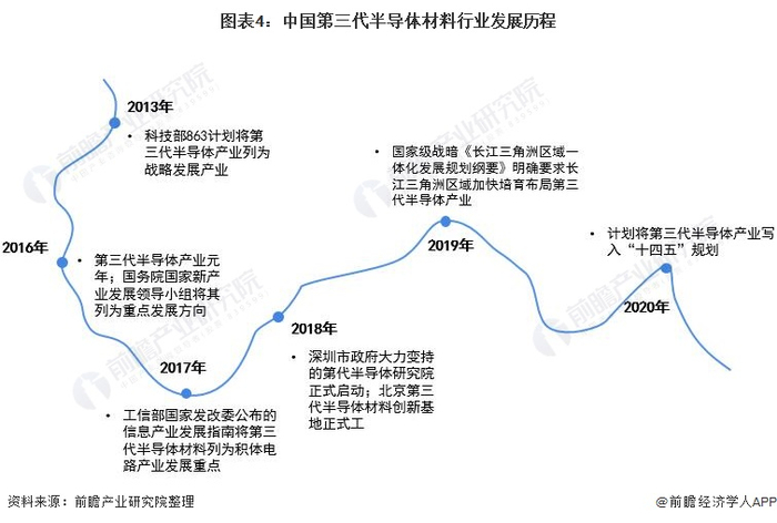 中国第三代半导体兴起的时间较短,2013年,科技部863计划首次阿静第三代半导体产业列为国战战略发展产业。