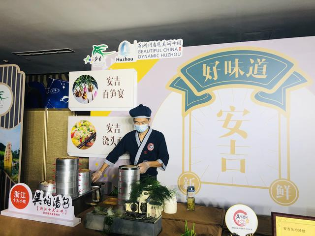 值得一提的是,为进一步传播“安吉好味道”,交流会现场展示了浙江十大小吃之一——安吉吴均汤包。晶莹剔透的包子皮、浓郁的汤汁和鲜香四溢的肉馅,吸引了不少嘉宾驻足品尝。此外,现场还设置了独具安吉特色的美术陈列展示区,集中展示了竹编、竹扇、白茶、笋干等安吉特色旅游商品。