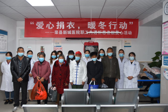 10月中旬,自贡市荣县新城医院党支部组织全院党团员医护人员,向透析患者捐献新旧衣服近500件,然后根据患者身高胖瘦需求进行分送。