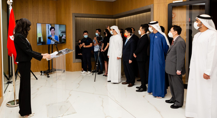 驻迪拜经贸办今日在办公室举行开幕仪式,香港行政长官林郑月娥透过视像录影致辞。她表示,驻迪拜经贸办的成立充分显示香港十分重视与阿拉伯联合酋长国(阿联酋)和其他五个海合会成员国的伙伴关系,亦将有助区内的企业和投资者把握香港独有的机遇,当中包括在粤港澳大湾区和国家“十四五”规划的支持下,香港建设国际创新科技中心、提升其在金融服务、贸易和航运的固有优势,以及在文化、法律和解决争议服务和知识产权贸易等领域的发展所带来的机遇。