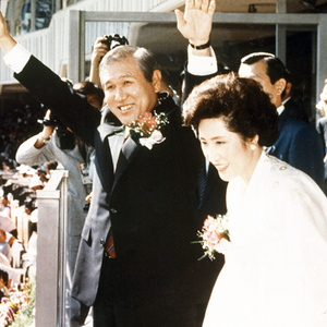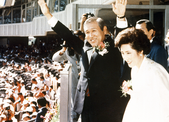 韩国前总统卢泰愚10月26日去世之后,韩国国务总理金富谦27日表示,将为卢泰愚举办国葬。上图:1988年9月17日,韩国总统卢泰愚和夫人出席了汉城奥运会开幕式。视觉中国资料图