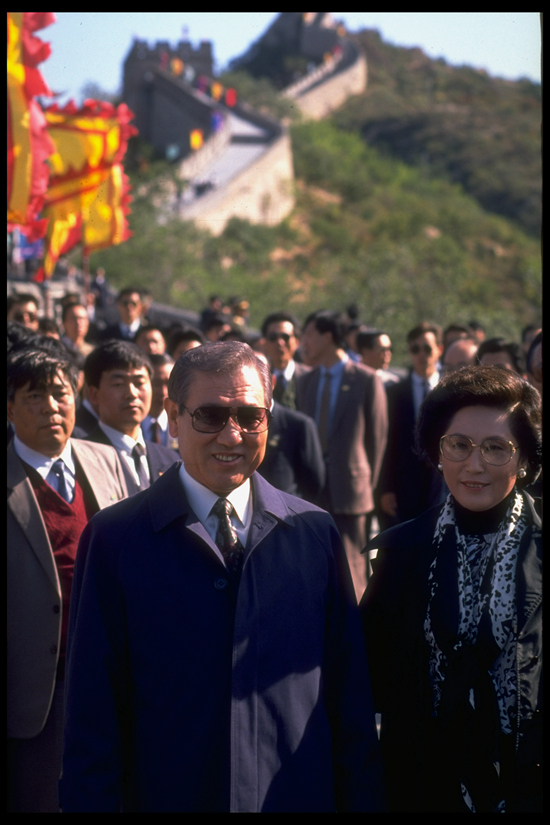 1992年9月29日,韩国总统卢泰愚访问中国时游览长城。 视觉中国资料图