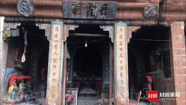 随着介绍,登上1716级石梯,穿过一座古朴的石门,便来到有着三教共顶美誉的丹霞洞。据介绍,丹霞洞全称丹霞洞石窟群,共分四窟,建于清代,供奉着儒释道三教圣人和神佛。
