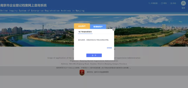 目前,该系统面向登记机关为南京市市场监督管理局的企业开放。