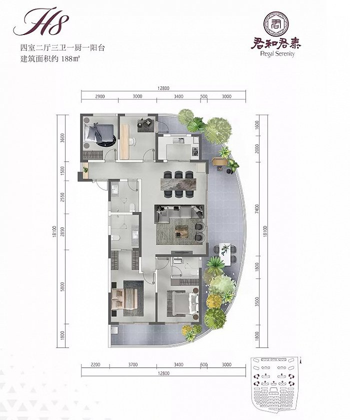 (昆明·君和君泰环景楼王建面约188㎡户型图)