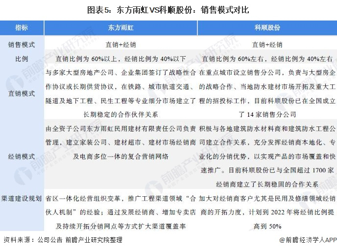 ——防水建筑材料销售布局对比:以国内市场为主,直销和经销相结合