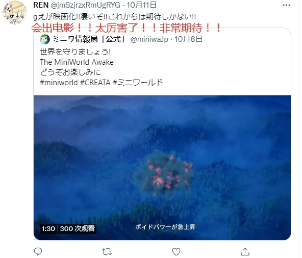 据悉,此次海外版预告共有8种语言, 在印尼、泰国、巴西、西班牙等国家的社交软件同时发布,海外粉丝纷纷推文表示期待上映,一位日本粉丝推文写到,“迷你世界会出电影!非常值得期待!”