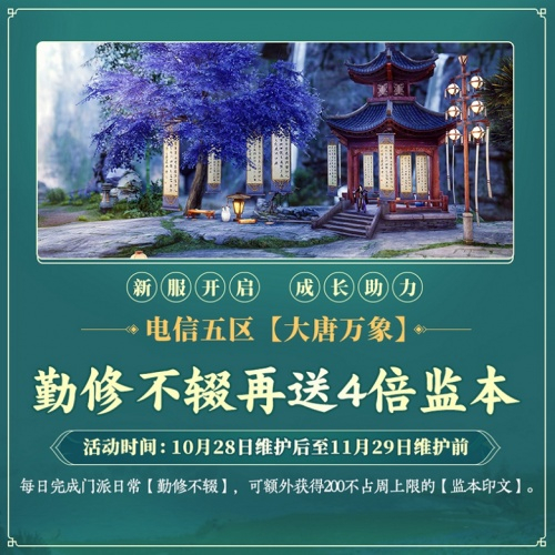 随着“北天药宗”海量更新内容的到来,全新王者争霸服【大唐万象】也将在今日于电信五区同步开放!本次争霸服总结过往PVP搞事服过于封闭、物资匮乏、经济难以循环的经验,在完全正式服的开放环境中加入定制化的新手期设定,为新服开启冲刺活动,助力有志侠士重燃热血,快速提升帮会等级!