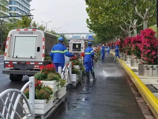 目前,国家会展中心(上海)周边保洁机械化率达到100%,机械化保洁车辆也由传统燃油车升级更新为新能源机械化保洁车。进博会期间, 采取24小时的保洁模式,每天的洒水从4次增加至8次,机扫频次也从4次增加至8次。