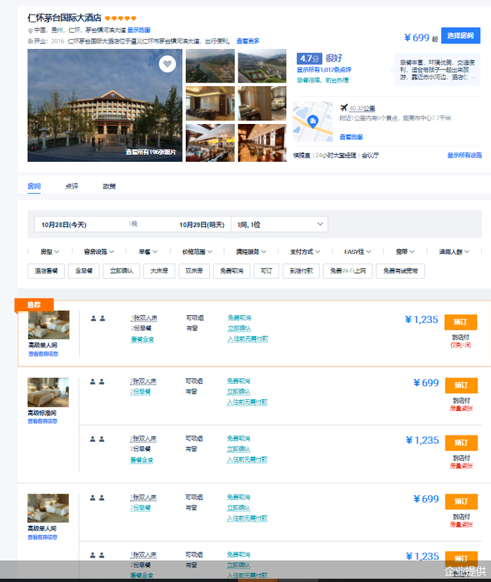 茅台国际大酒店上次站在舆论风口还是10月中旬该酒店宣布取消“订房购酒”,从此,这个酒店仿佛并不只是一家酒店那么简单。值得一提的是,自取消“订房购酒”活动后,茅台国际大酒店不再只能电话订房,已开启网上订房通道,北京商报记者发现,虽然房间依然紧张,但一房难求的现象有所改变。