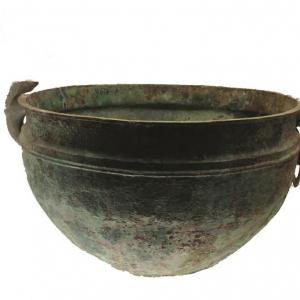 吴王夫差鉴,铸造于春秋时代,高38.5厘米,口径62.7厘米,有对称的兽耳衔环,鉴的颈部饰横鳞纹,腹部饰蟠螭纹和垂叶纹,器内壁有铭文三行13字:“攻吴王夫差择其吉金自作御鉴”。从铭文可知,这件青铜重器为夫差御造之物,工艺精美,弥足珍贵,是吴国古代青铜铸造的重要科技物证。