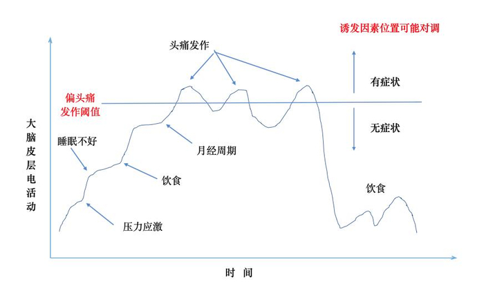 其实,如果简单理解发病机制,偏头痛就是遗传了一个敏感的大脑,有一个非常低的头痛发作阈值。