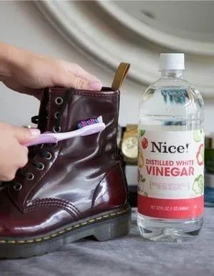 1.用鞋刷把鞋面上的灰尘刷掉,然后蘸取一点鞋油或者其他皮革清洁剂轻轻擦拭鞋面,难以去除的污渍还可以沾一点点白醋去清除。如果没有皮革清洁和护理剂,用你的护发素,就能让鞋子从黯淡无光变闪亮~
